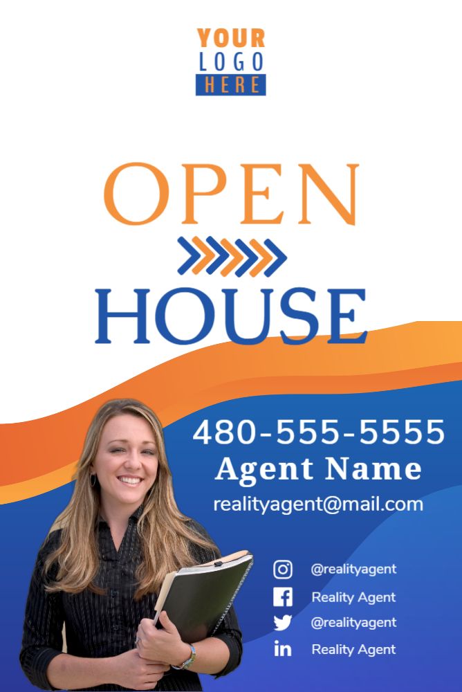 Open House A Frame Sign Modern Blue & Yellow